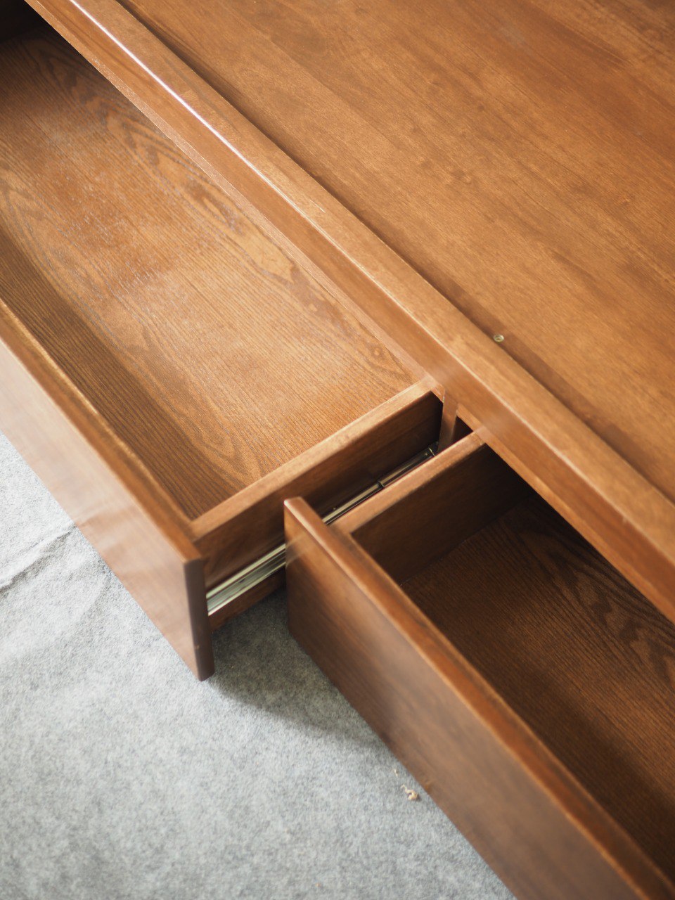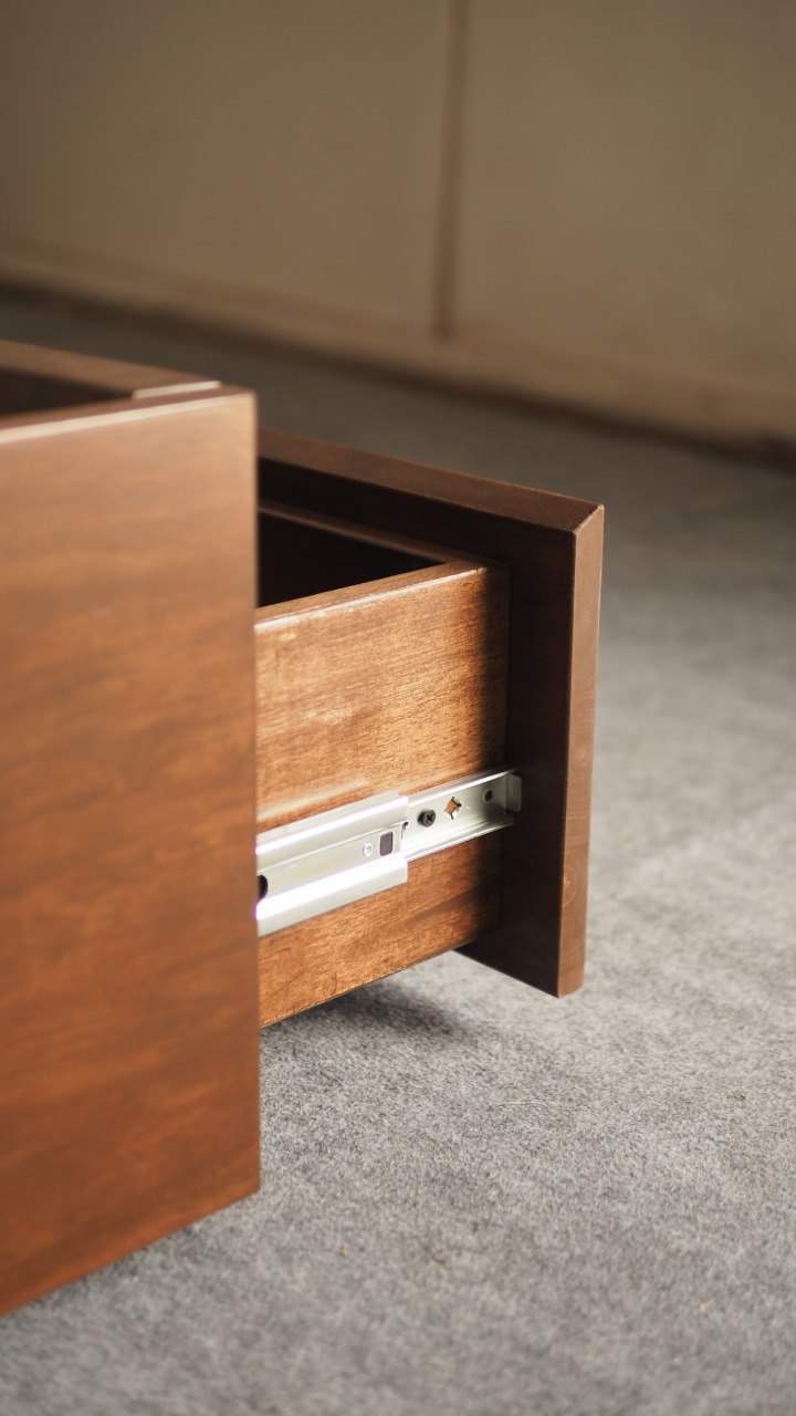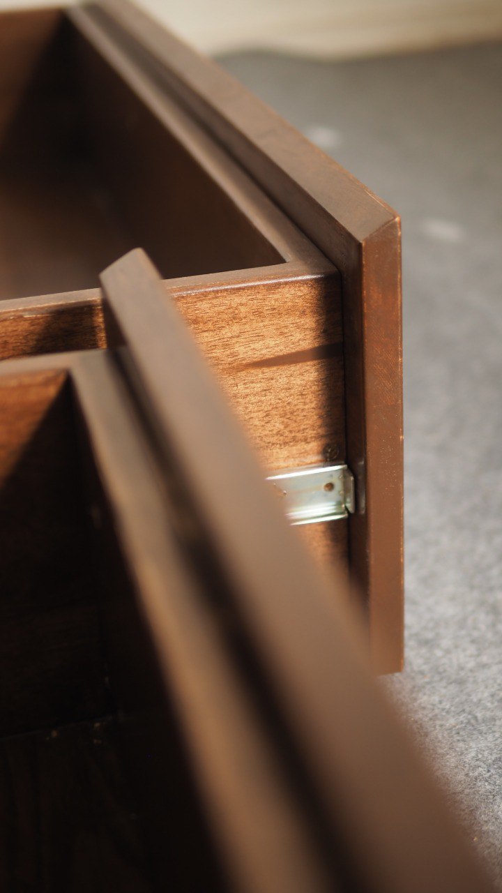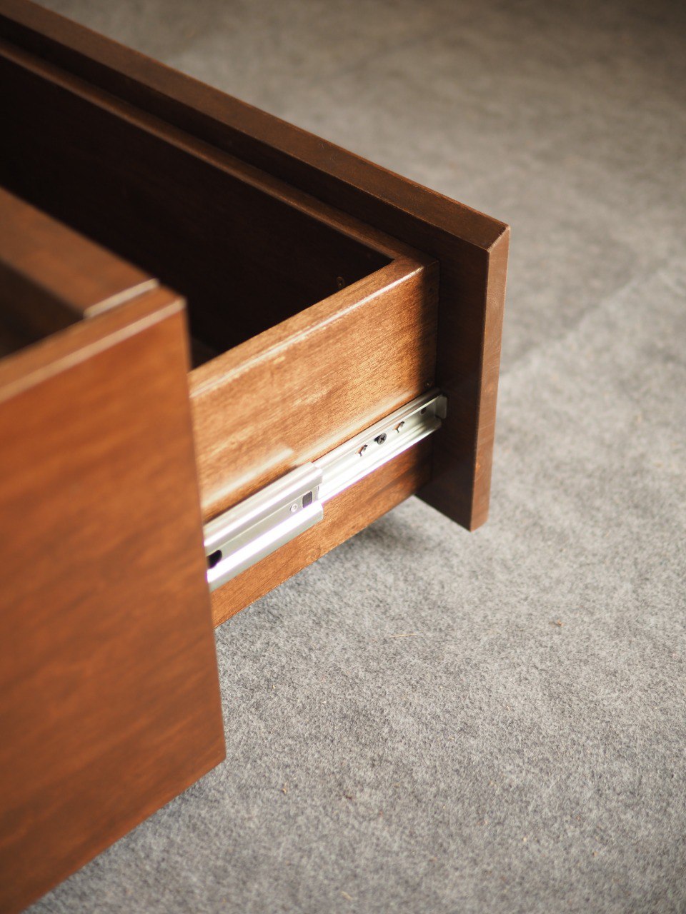 • Drawers run smoothly on heavy-duty metal sliders for easy access